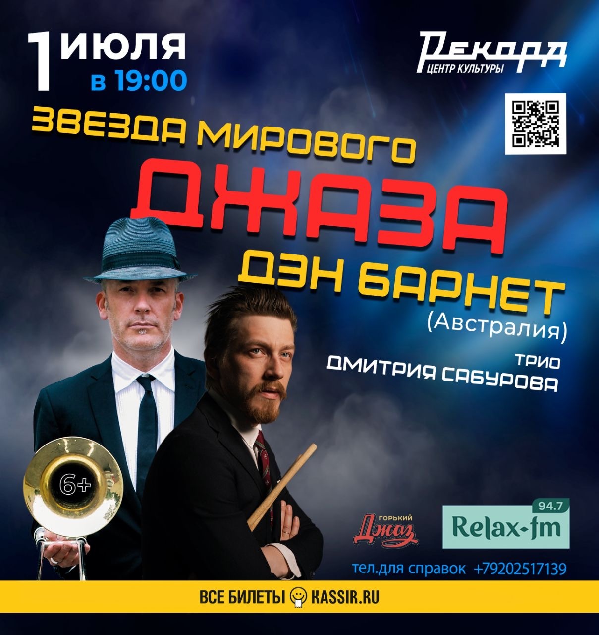 Билеты по ссылке: https://nn.kassir.ru/koncert/den-barnet-i-trio-dmitriya-saburova
