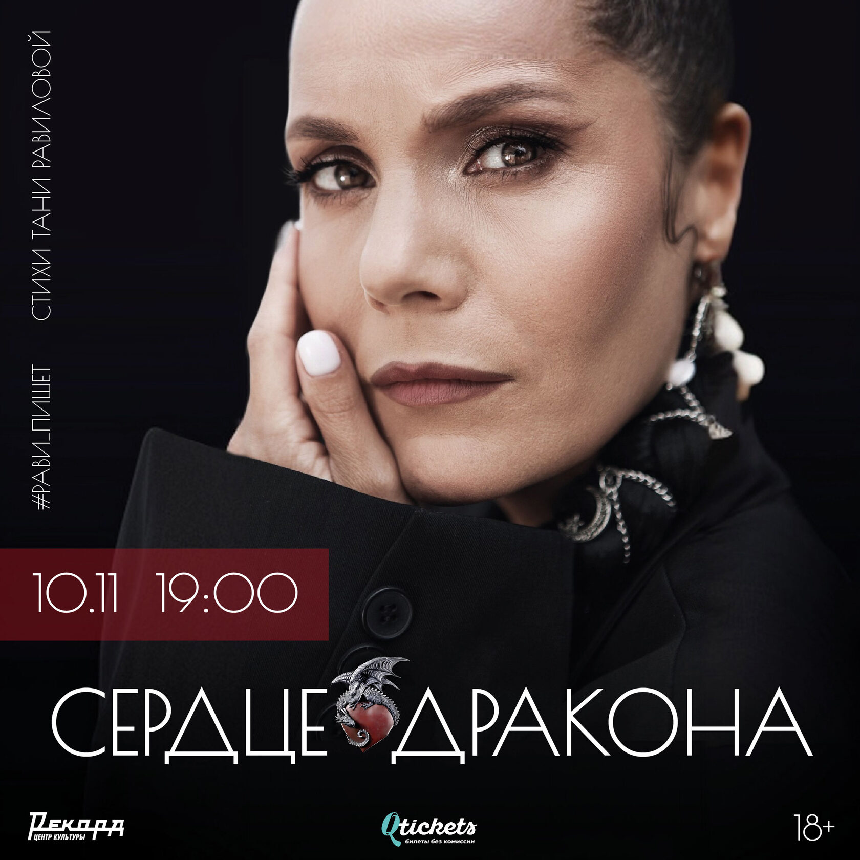 10 ноября в 19:00 поэтесса Таня Равилова и её проект #рави_пишет представят новую программу «Сердце дракона» - о страсти к жизни, о вере в себя, о смелости расправить крылья. О том, как приручить и полюбить своего внутреннего дракона.