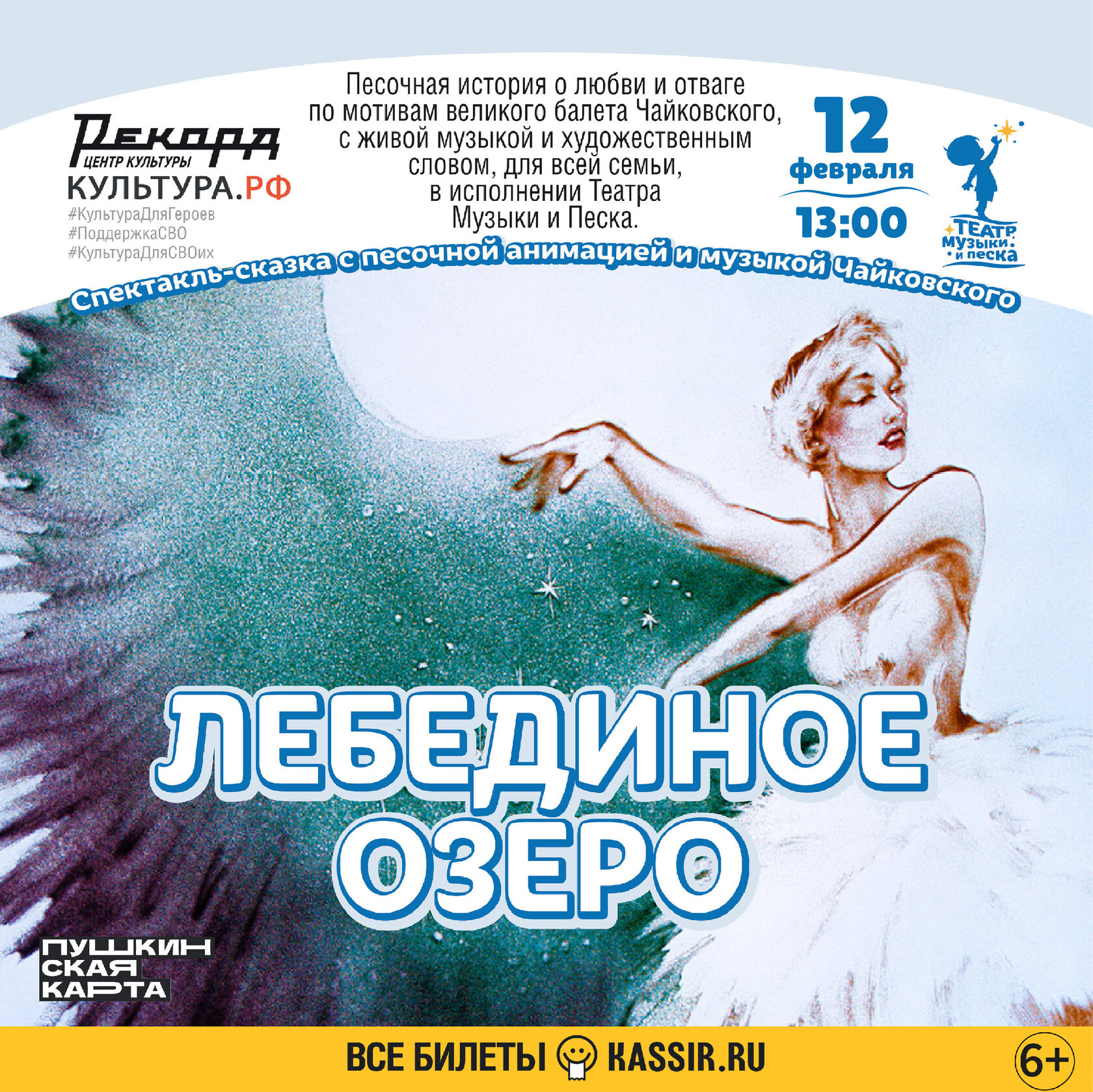 Билеты по ссылке: https://nn.kassir.ru/teatr/kinotsentr-rekord/lebedinoe-ozero-muzyikalno-pesochnyiy-spektakl_2026-02-12