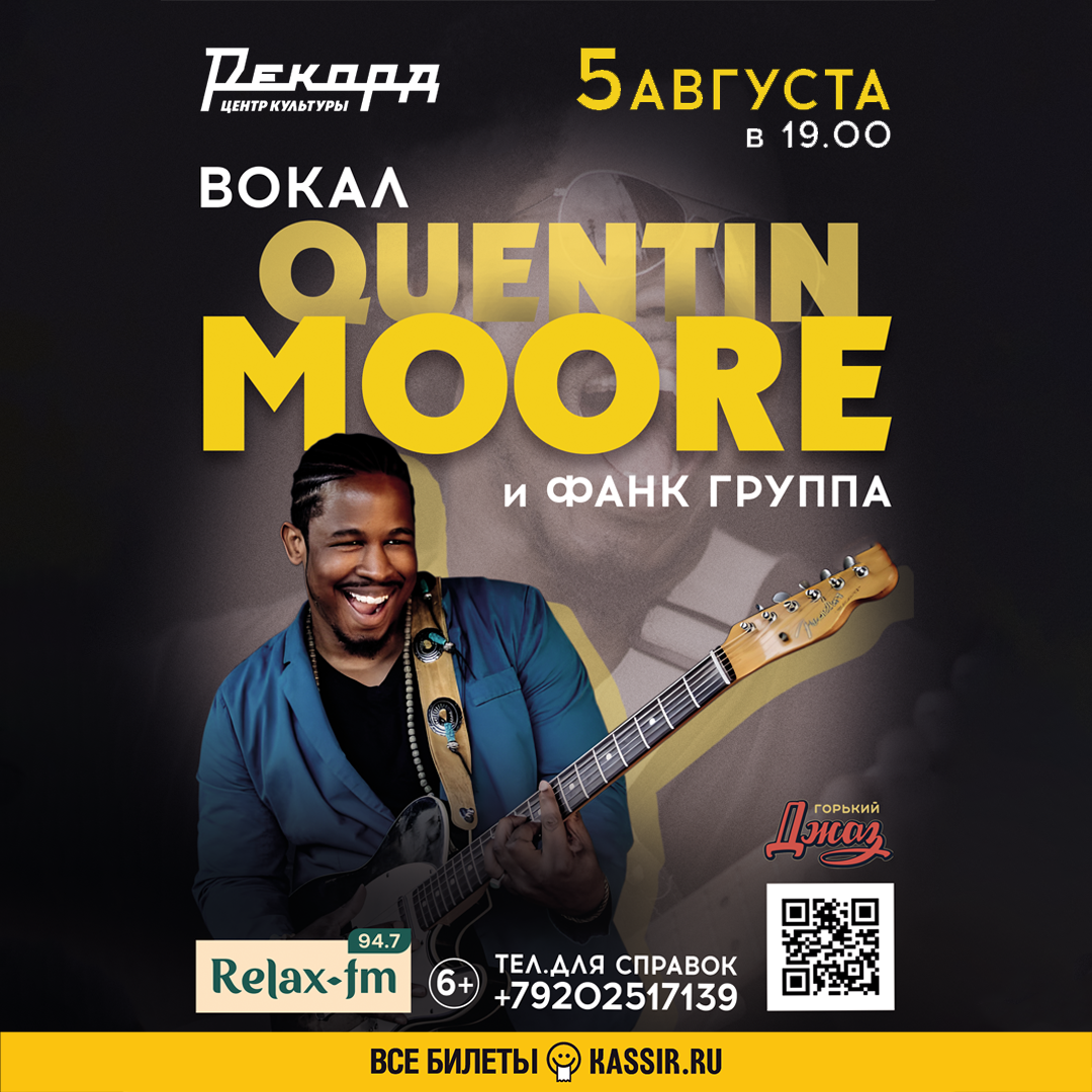 5 августа в 19:00 на сцене Центра культуры «Рекорд» выступит Квентин Мур!