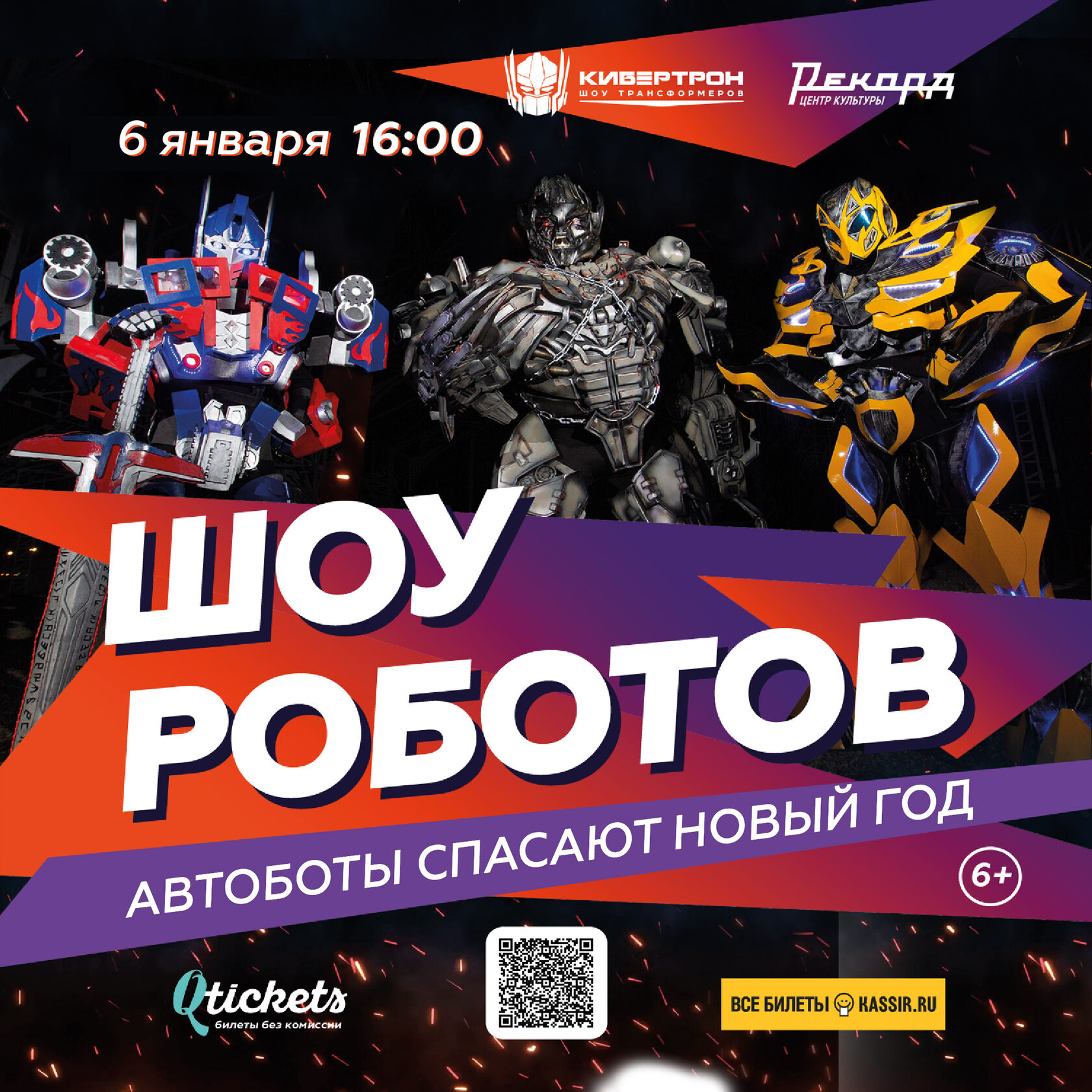 6 января в 16:00 в Центре культуры «Рекорд» шоу трансформеров «Кибертрон» представит новогодний спектакль «Автоботы спасают Новый Год»!