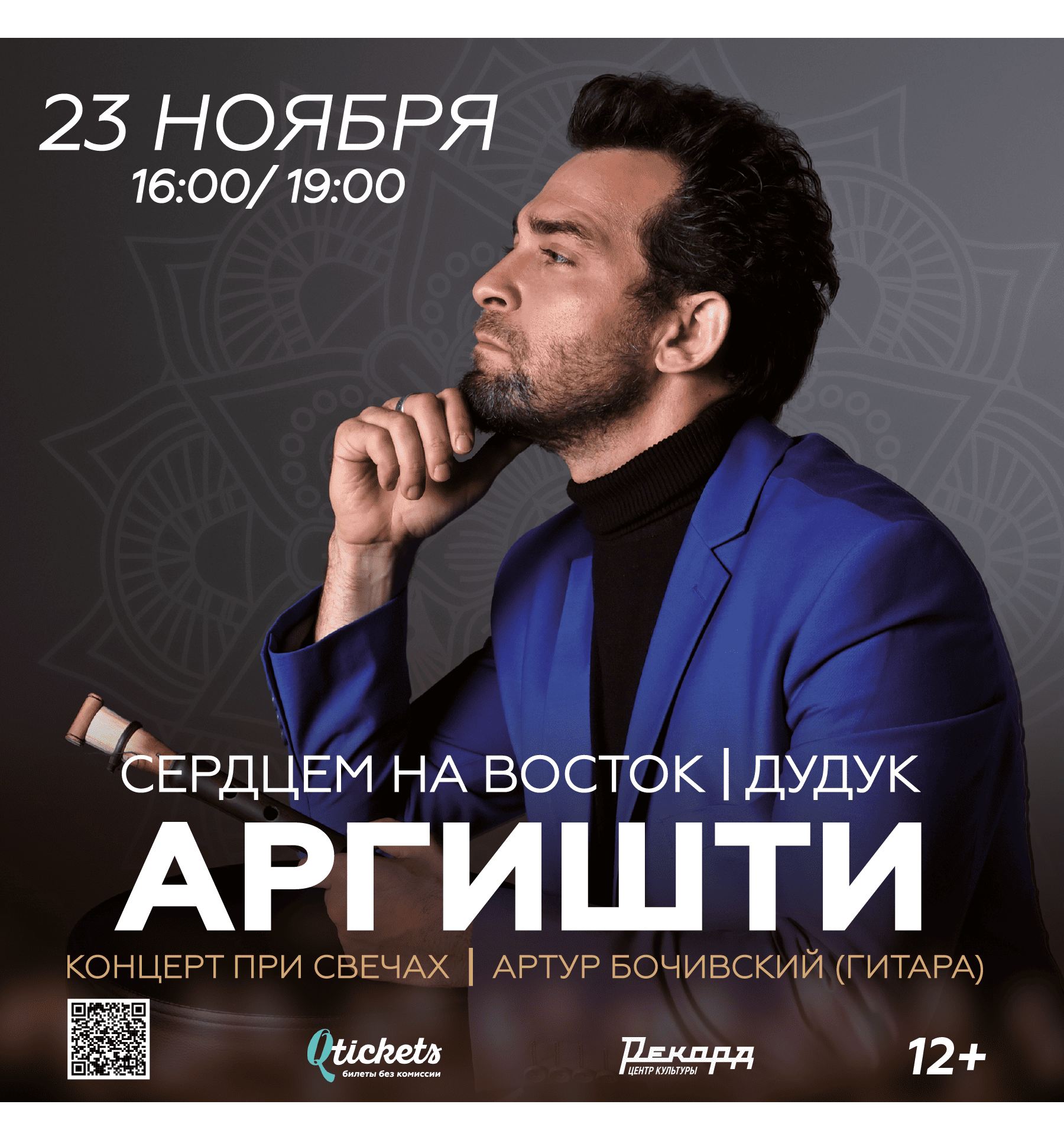 23 ноября в 16:00 и 19:00 в Центре культуры «Рекорд» при сотнях свечей выступит Аргишти.