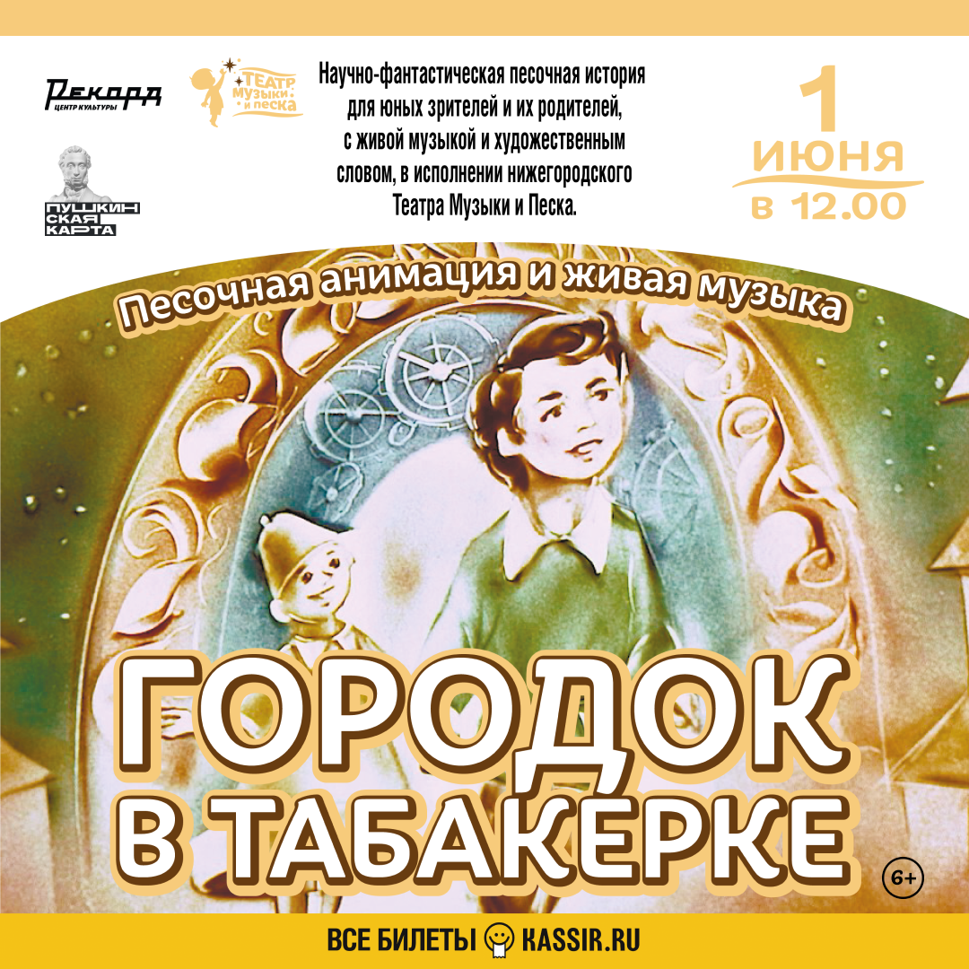 Билеты по ссылке: https://nn.kassir.ru/detyam/kinotsentr-rekord/gorodok-v-tabakerke-muzyikalno-pesochnyiy-spektakl_2025-06-01