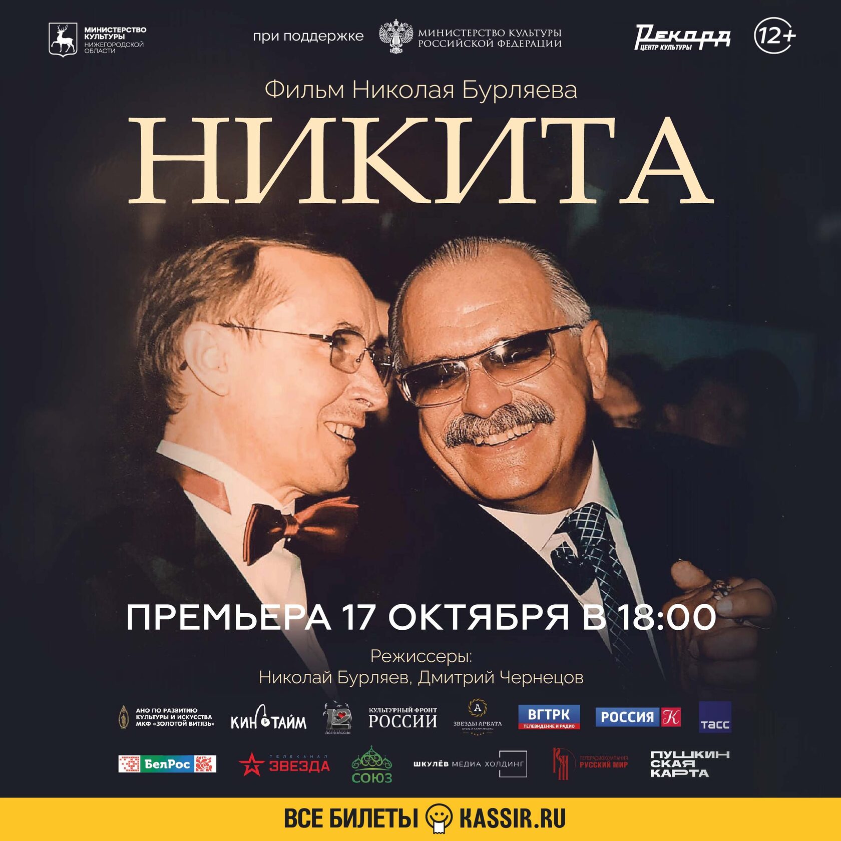 17 октября в 18:00 в «Рекорде» пройдет премьерный показ фильма «Никита» (12+)! К 80-летию выдающегося Русского режиссёра Никиты Михалкова посвящается.